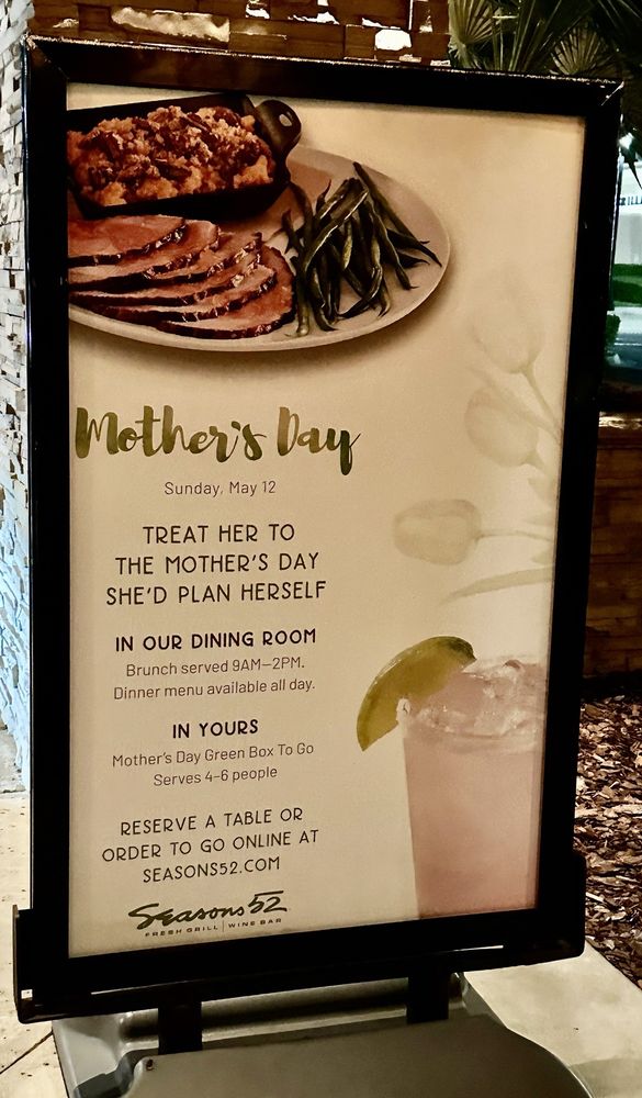 Pair your meal with a selection from their curated wine list, featuring noteworthy options such as Santa Julia Pinot Grigio and Acquisition Cabernet Sauvignon. Whether it's a romantic dinner or a family gathering, Seasons 52 promises exceptional service and delightful dishes that nourish both the body and soul.